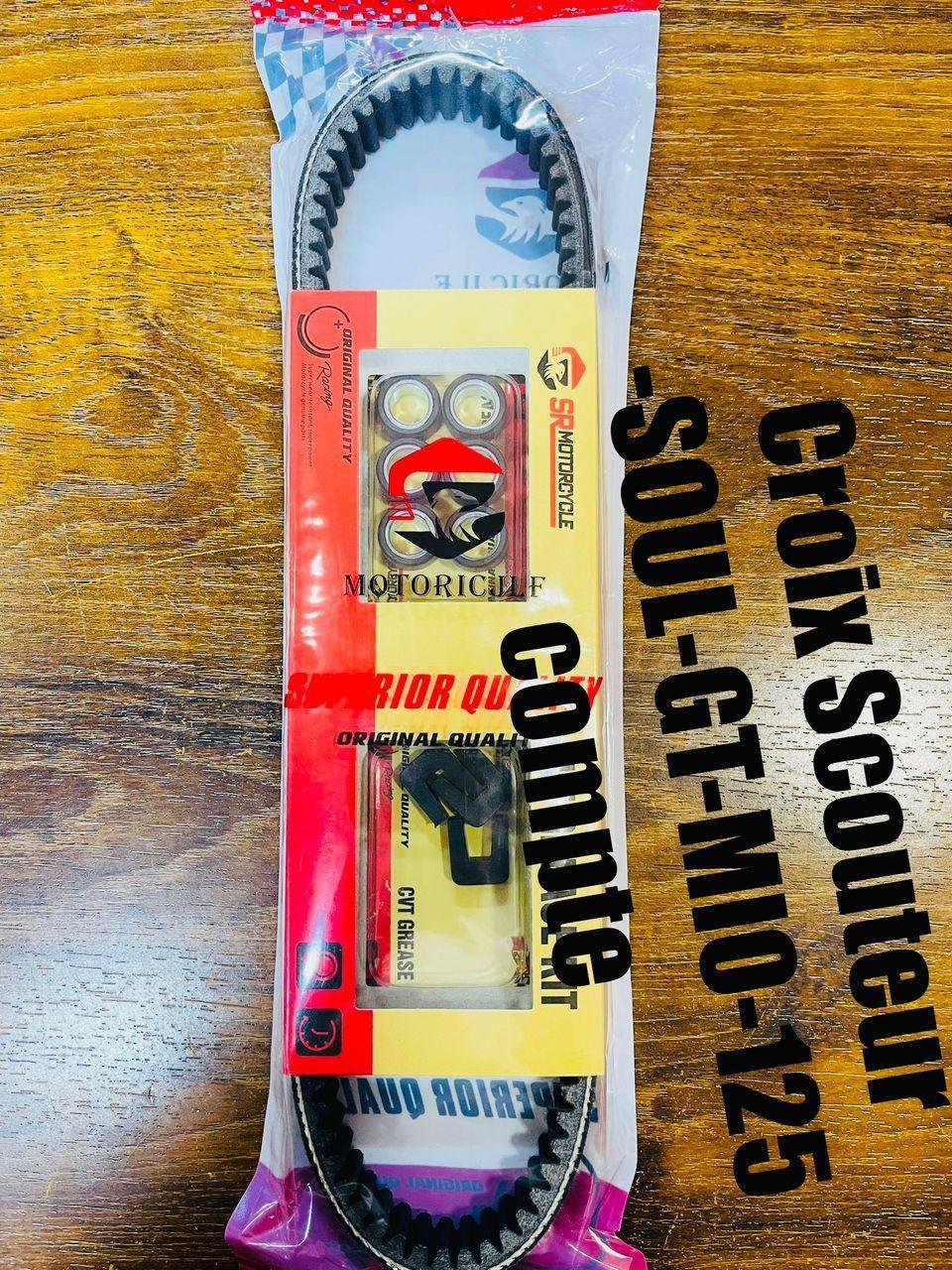 ourroie + Galets Soul GT Mio 125 ✏️ Brève description : Kit courroie et galets Soul GT / Mio 125 pour transmission CVT fluide et accélération optimale. 📦 Description : Ce kit courroie + galets SR Motorcycle est conçu